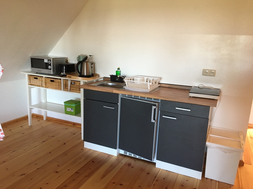 Ausstattung: 2 Doppelbetten (1,80 x 2 m), TV, kleine Frühstücksküchenzeile mit einem Induktionsfeld, Dusche/WC, WLAN, TV